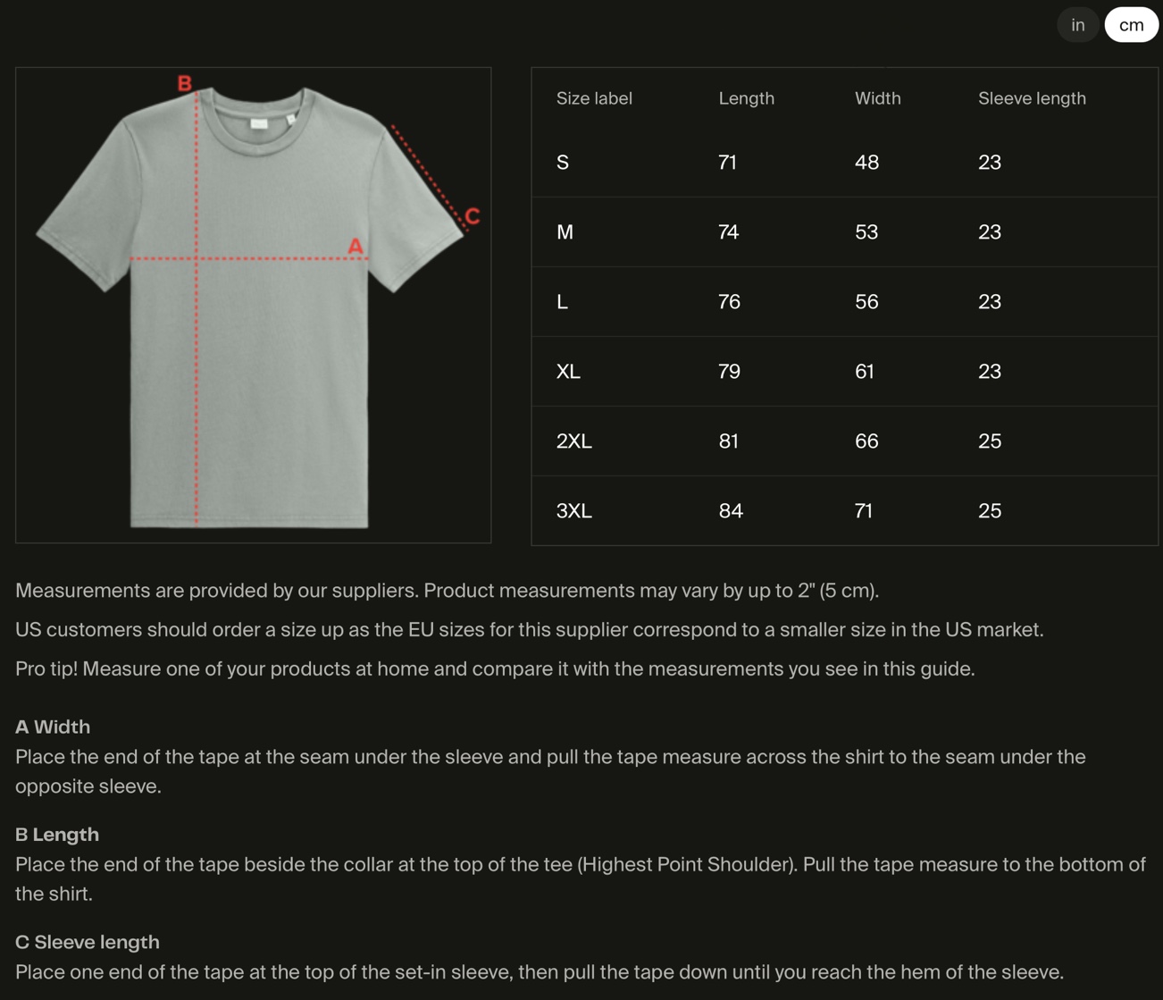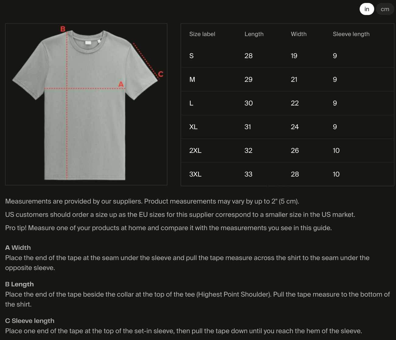 guide size in/cm